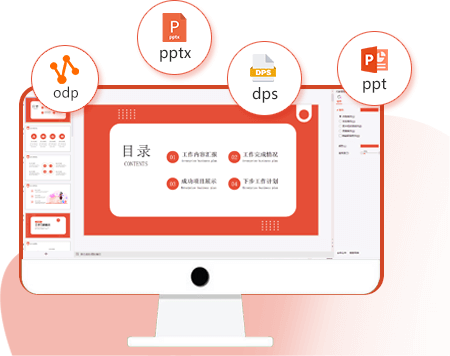 兼容所有主流文档格式,例如:PPT、PPTX、ODP、DPS等。