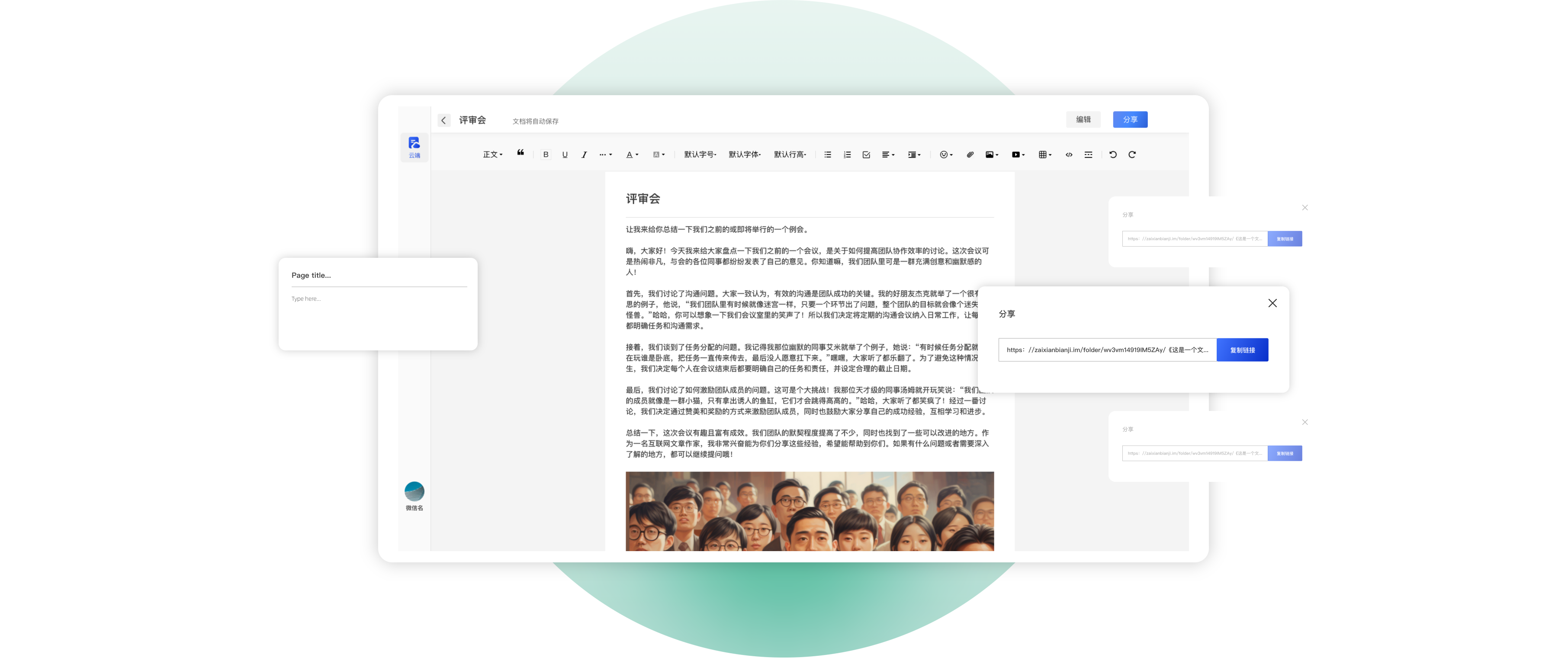 在线编辑文档,通过链接分享。告别通过邮件多次传输文件的繁琐