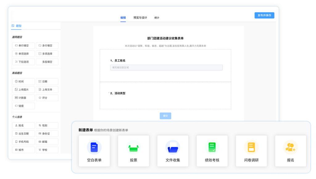 - 丰富的字段和风格:发起可自由定制表单内容以及样式,实时发布表单,收集数据和文档。